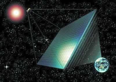 据测算,按照目前人类所生产的太阳能电池板的能量转换效率,如果能够在距地球赤道约36000公里上空的静止轨道上,发射一颗配有边长为2.5千米的正方形太阳能电池板的发电卫星,其发电量可达到100万千瓦级,足以和一座核能发电机组相媲美。