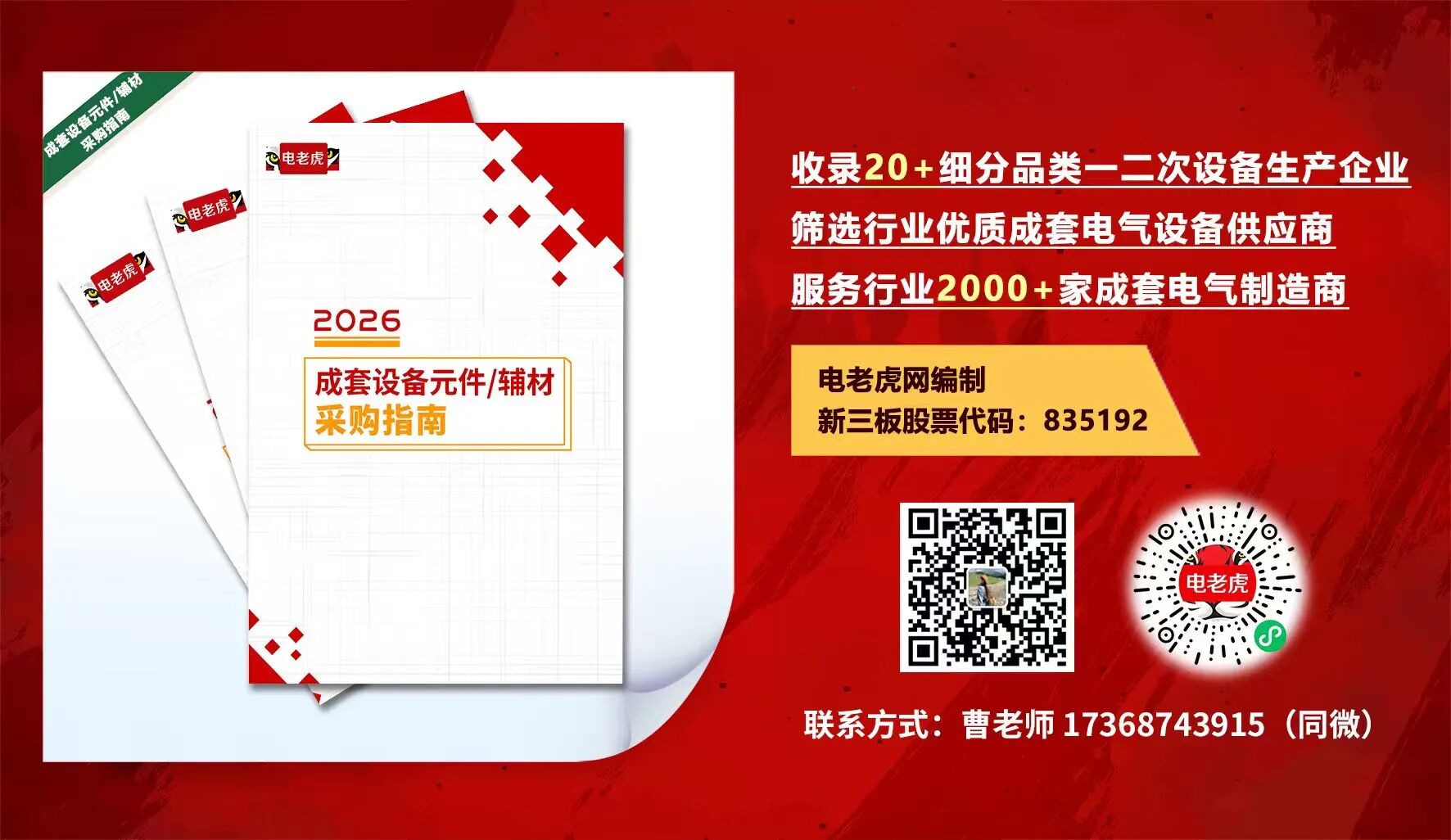 2026版《成套设备元件辅材采购指南》将服务行业2000+家成套电气制造商,是成套厂采购人员必备的选型采购参考工具! 企业入编2026版《成套设备元件辅材采购指南》,是一次撬动市场机遇、夯实行业地位的战略布局! 扫码报名,立即入编 * 更多详情可咨询负责人:曹老师 17368743915(同微)