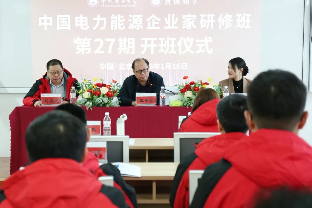 1月16日,2026年第一场中国能源电力企业家研修班·第27期开班典礼于华北电力大学正式拉开帷幕。 华北电力大学继续教育学院院长王子杰院长首先致辞欢迎新同学。 电老虎网副总裁、虎读商学院院长窦娜发表讲话。 浙江金莱勒电气股份有限公司董事长刘德先先生作为新生代表发言讲话。 26期学员山东尚佳电气有限公司总经理李颜军先生作为往期学员代表发言。 在庄重的班旗传承环节,旗帜的传递象征着责任、智慧与行业使命的延续,标志着第27期研修班正式启航。 典礼结束后,全体学员在华北电力大学主楼前合影,定格下第27期班级的首次集体亮相,也寓意着一个新的学习共同体正式形成。 学员们随后集体参观了华北电力大学校史馆。在厚重的历史脉络与鲜明的行业特色中,大家进一步理解了“电力之光”的传承,也增强了身为能源人的使命感与责任感。 随着开班典礼圆满落幕,第27期研修班已正式启程。期待各位企业家学员在接下来的模块中,持续收获前沿洞见、策略方法与深厚情谊,为企业发展与行业进步注入新的智识与动力。 中国电力能源企业家研修班,创办于2019年,由虎读商学院和华北电力大学共同举办,被称为“中国电力能源新黄埔军校”。 截止目前,已成功开办27期,拥有500+电力能源行业董事长/总经理学员;诸多院士、电网/发电等国企/央企领导、上市公司掌门人联袂授课;组织去特大国企/央企/标杆企业游学/沙龙超百场;校友间已广泛地建立新的合作。 【虎读商学院】更多精品课程正在招生中: ◇ 中国新型电力系统领军人才高级研修班·第2期 开学时间:4月10日 上课地点:南京工程学院 ◇ 中国能源电力国际领军人才研修班2期 开学时间:4月17日 上课地点:华北电力大学北京校区 ◇ 全国电力能源企业家演讲力训练营 上课时间:待定