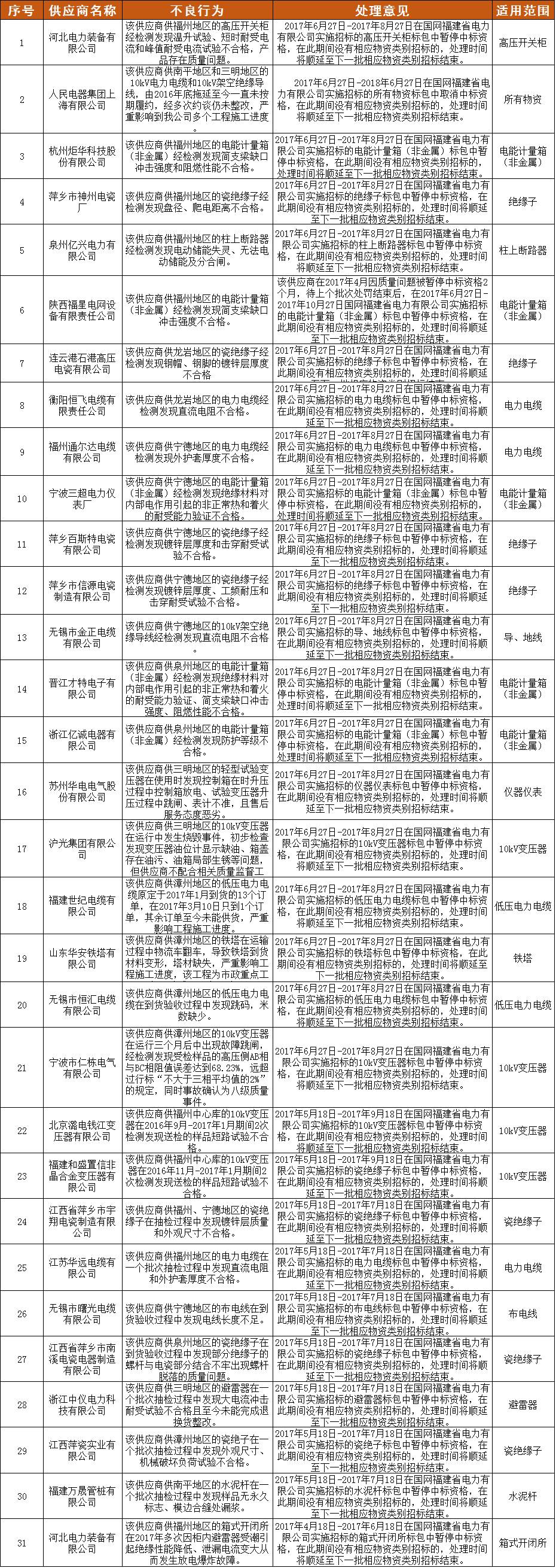 19、国网福建省电力有限公司关于供应商不良行为处理情况的通报(2017年6月)