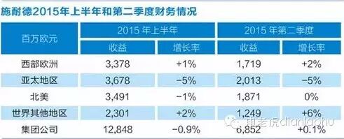 2015年7月,施耐德电气发布的上半年业绩公告显示,该公司总收入约128.5亿欧元(约合873.66亿元人民币),同比增长9.8%,但净利润下降了12.4%。税前利润率为12.5%,低于此前的预期利润率14%-14.5%。