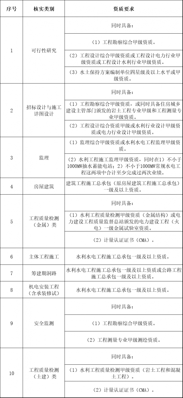 参加国家电网有限公司总部电源(抽水蓄能电站工程)项目投标的服务类供应商。本次核实类别为:设计、监理、房屋建筑、工程质量检测(金属)、主体工程施工、筹建期洞路、机电安装工程(含承装修试)、安全监测、工程质量检测(土建)共九类。