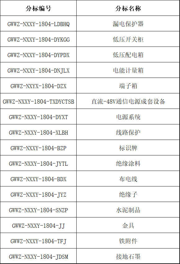 - 国网宁夏电力2018年第一次物资协议库存招标采购公告