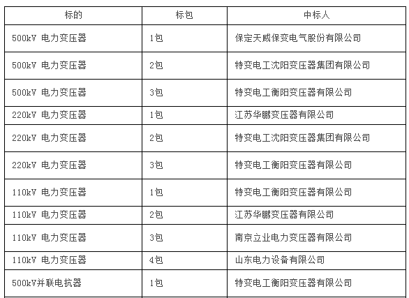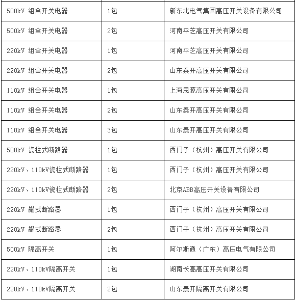 根据南方电网发布的最新中标结果公告,2017年主网一次设备第二批批次招标项目中标结果现公布如下: