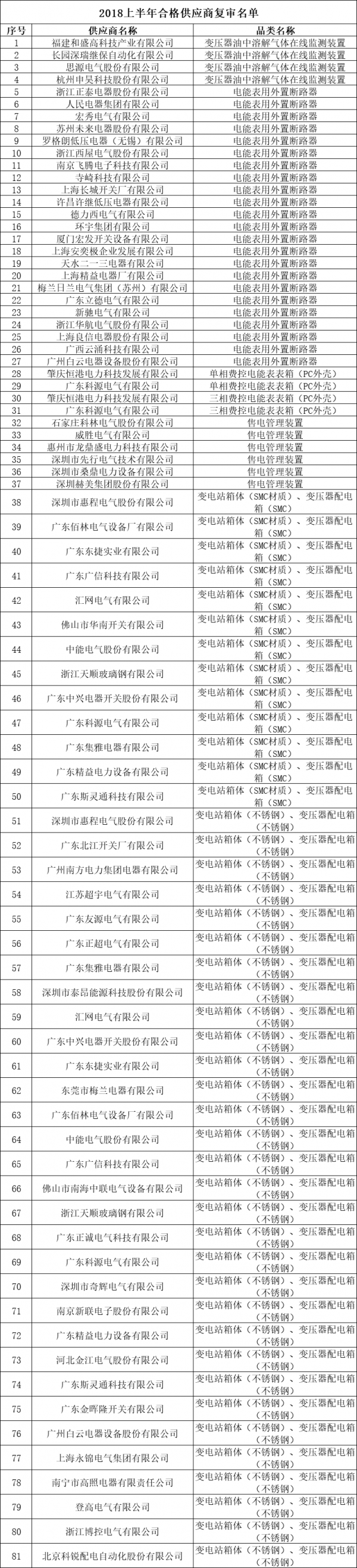 - 166家合格供应商复审名单!广东电网2018合格供应商复审工作