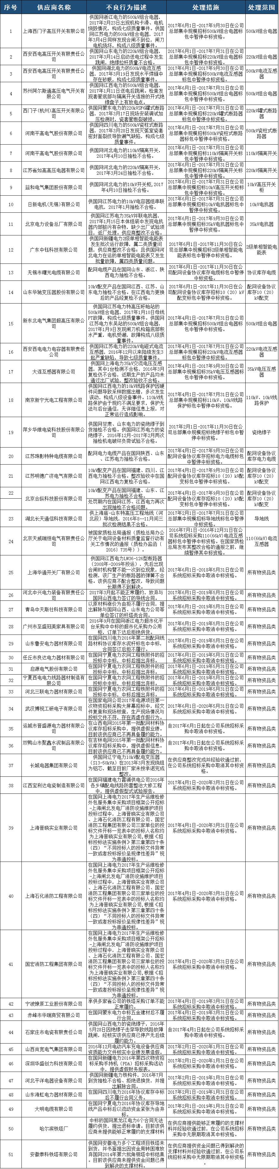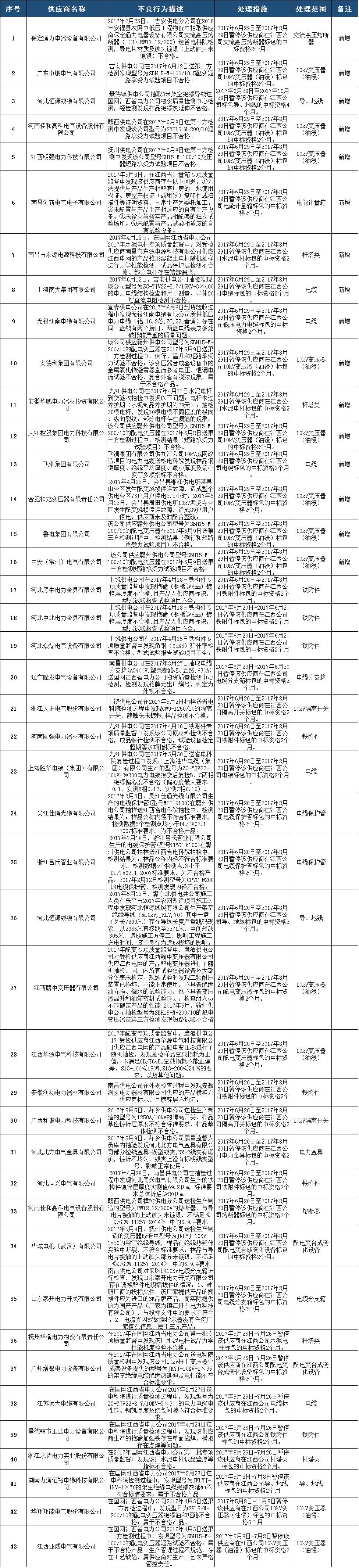 一、国网电网公司关于供应商不良行为处理情况的通报(2017年6月)