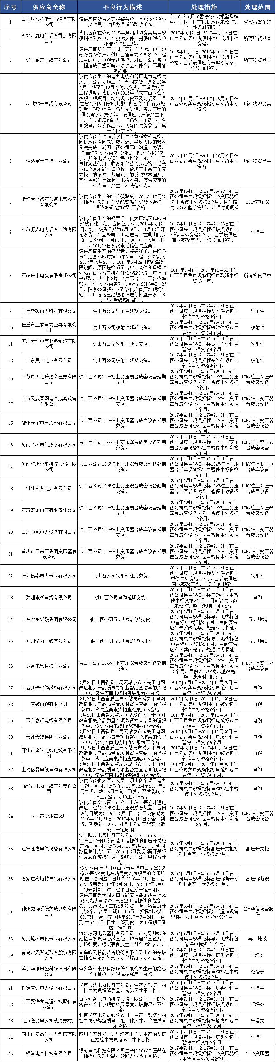 10、国网山西电力公司关于供应商不良行为处理情况的通报(2017年6月)
