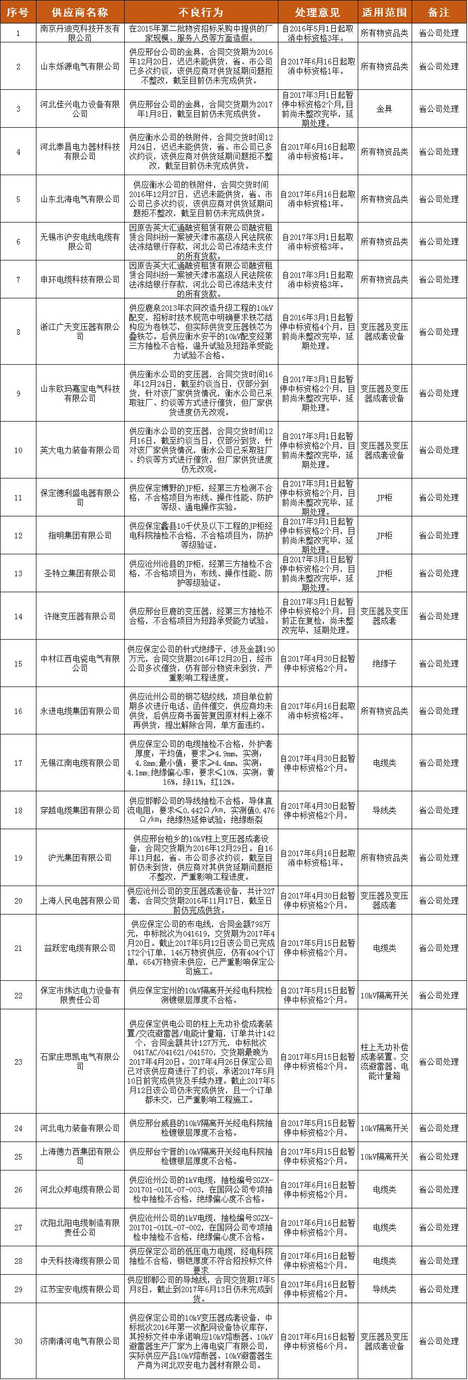13、国网河北省电力公司关于供应商不良行为处理情况的通报(2017年6月份)