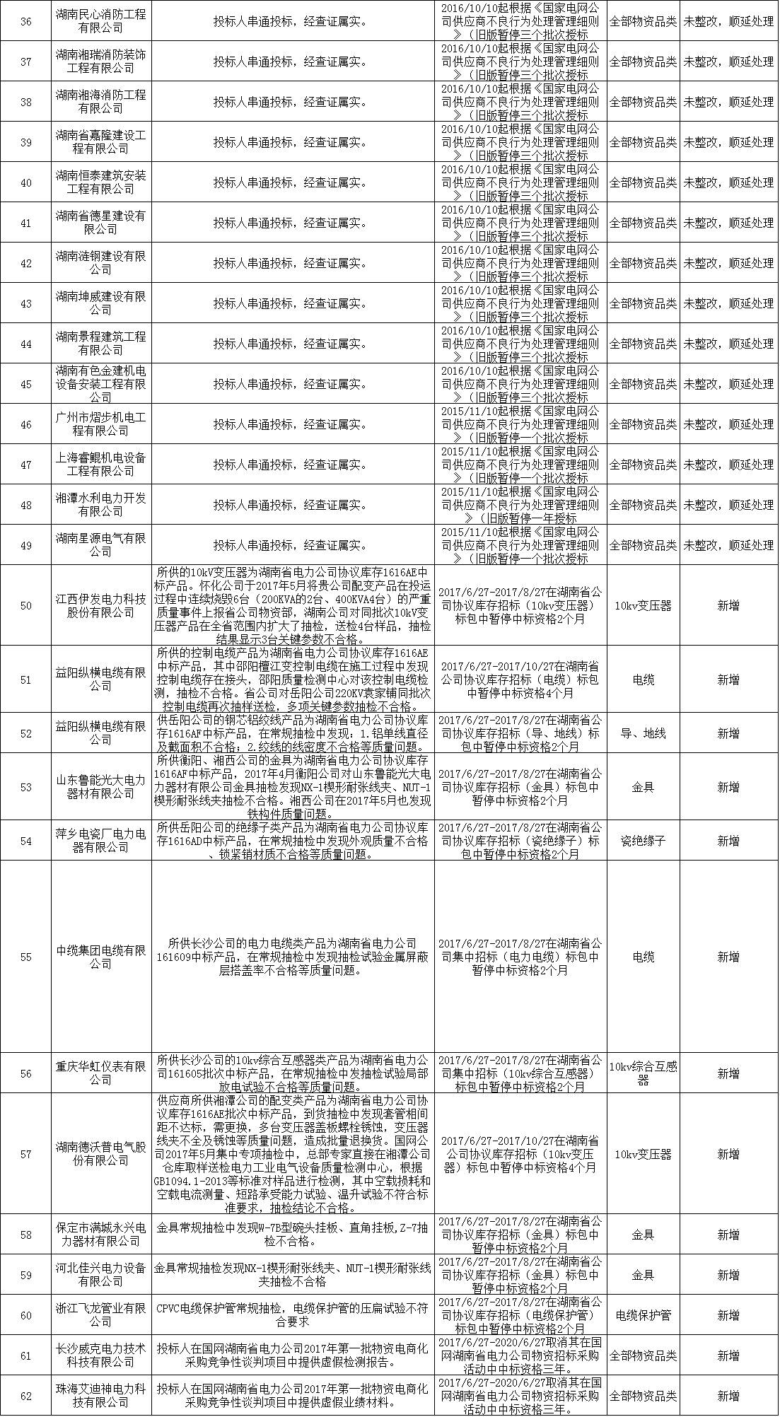 16、国网湖南省电力公司关于供应商不良行为处理情况的公示(2017年6月)