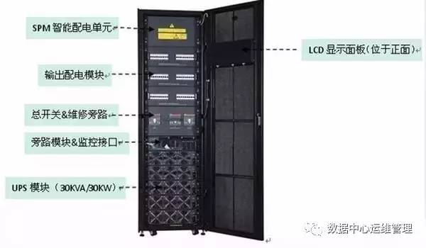 其特征在于:所述连接电缆包括有中性线;所述UPS输出电缆中的中性线,其内导体的截面大于相线电缆中导体的截面。内部各功能单元所安装的进出线断路器按顺序分层排列。塑壳断路器采用固定式安装,微型断路器采用导轨卡式安装。确保操作维护安全方便,加上高度模块化的设计,为快速简单的安装及故障维护提供了极大的便利。